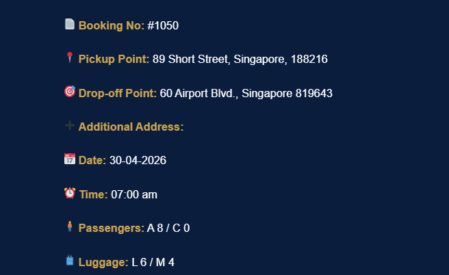 If you find an error, do not rely on partial updates or informal corrections. Instead, submit a new booking form with the correct pickup details. This ensures that the system generates a fresh, accurate booking with all the correct information properly recorded.